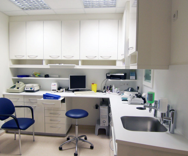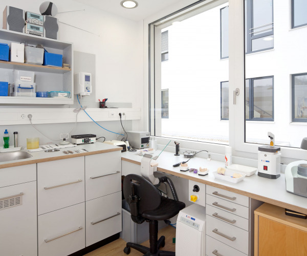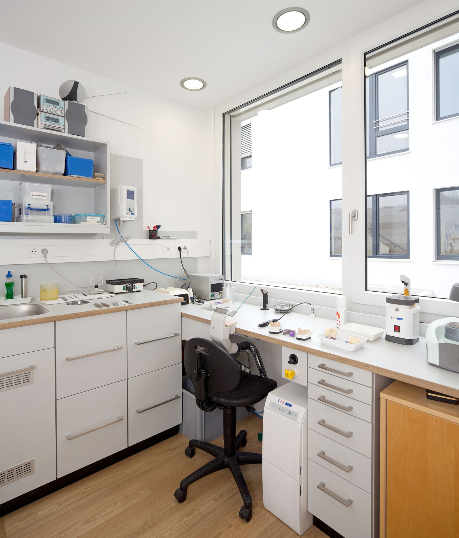 Optimale Platznutzung ermöglicht ein ergonomisches Arbeiten mit Labormöbeln von Ziegler DesignEin Schleifplatz für das zahnärztliche LaborAngenehme Farben üben gerade für gestresste Patienten Ruhe und Entspannung aus