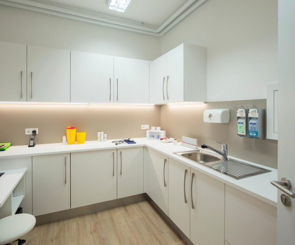 in einem gemäß den neuesten Richtlinien des deutschen Robert-Koch-Institutes geplanten und eingerichteten Praxislabor von Ziegler Design.