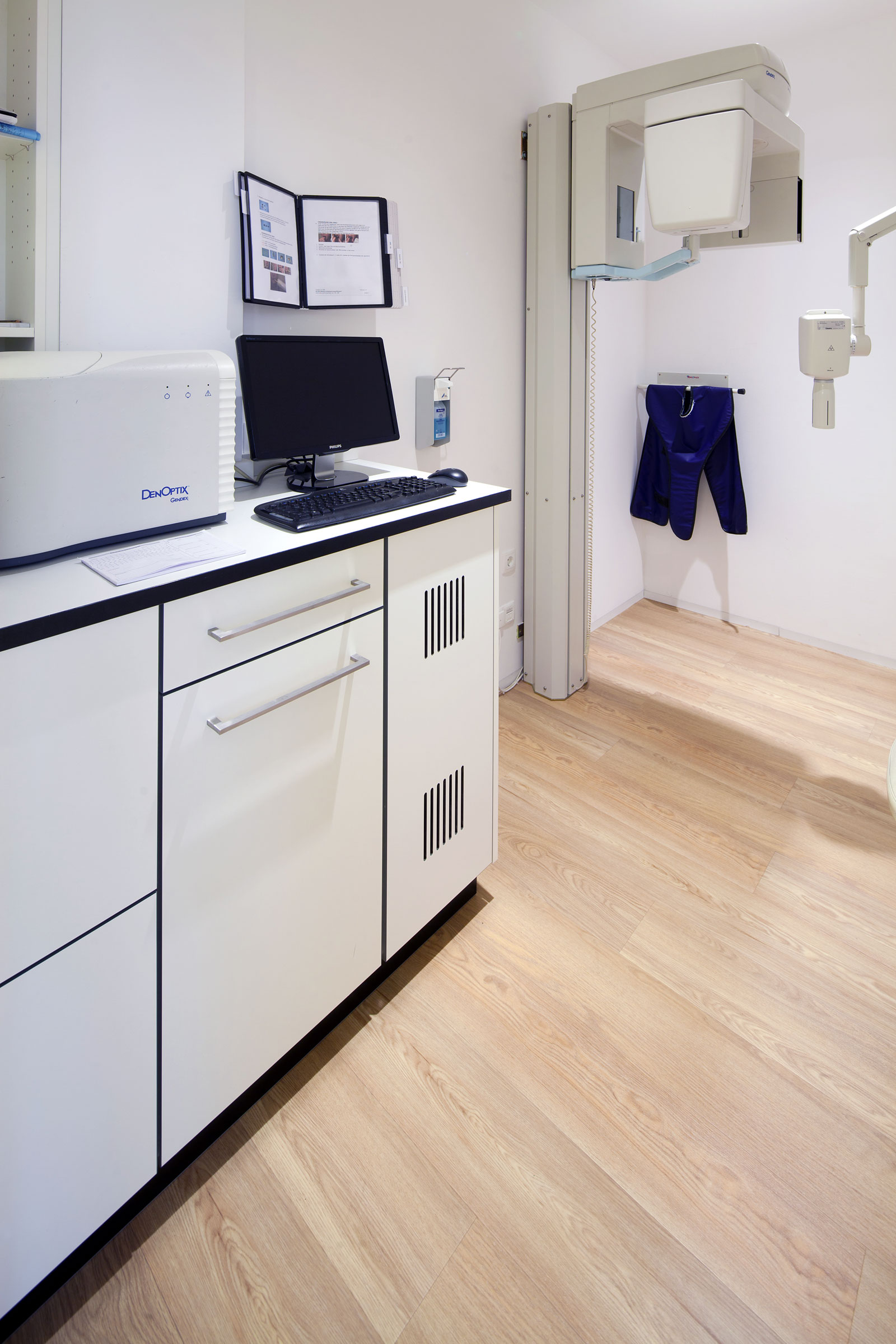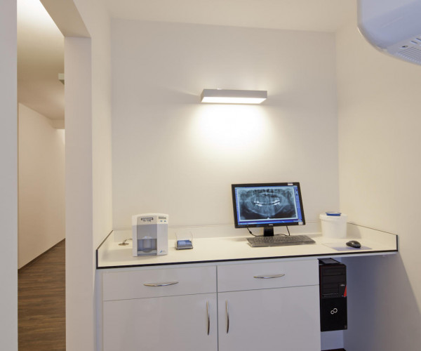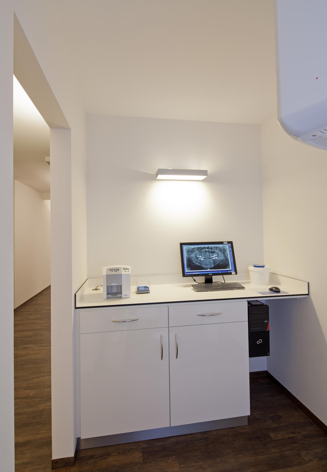 Der Röntgenraum mit seiner umfangreichen Technik, z.B. Röntgenapparat, PC, Monitor etc. erfordert die Planung, den Bau und die Installation einer passenden Möblierung. Hier können Sie auf die Erfahrung von Ziegler Design zählen.