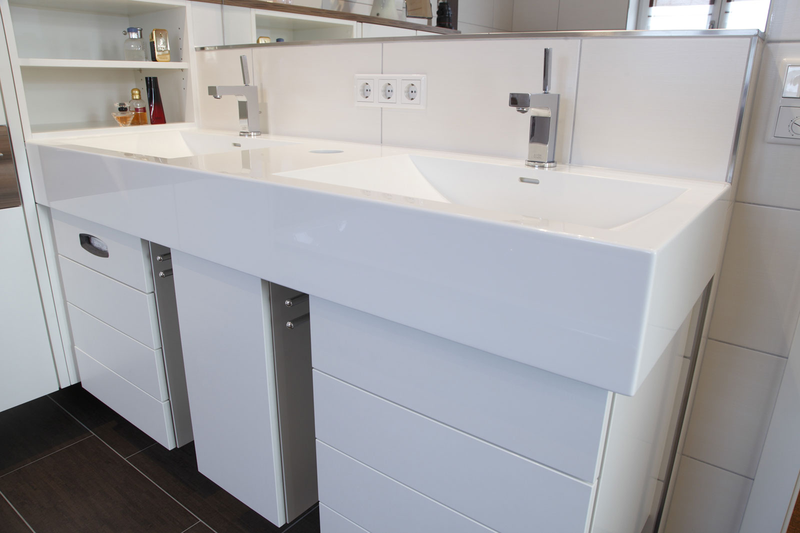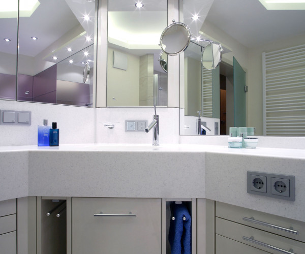 Eine Badzimmermöblierung von Ziegler Design ist immer ein individuell gefertigtes Massmöbel - ausgerichtet auf dortige enge Raumgeometrien unter Berücksichtigung der Kundenwünsche.